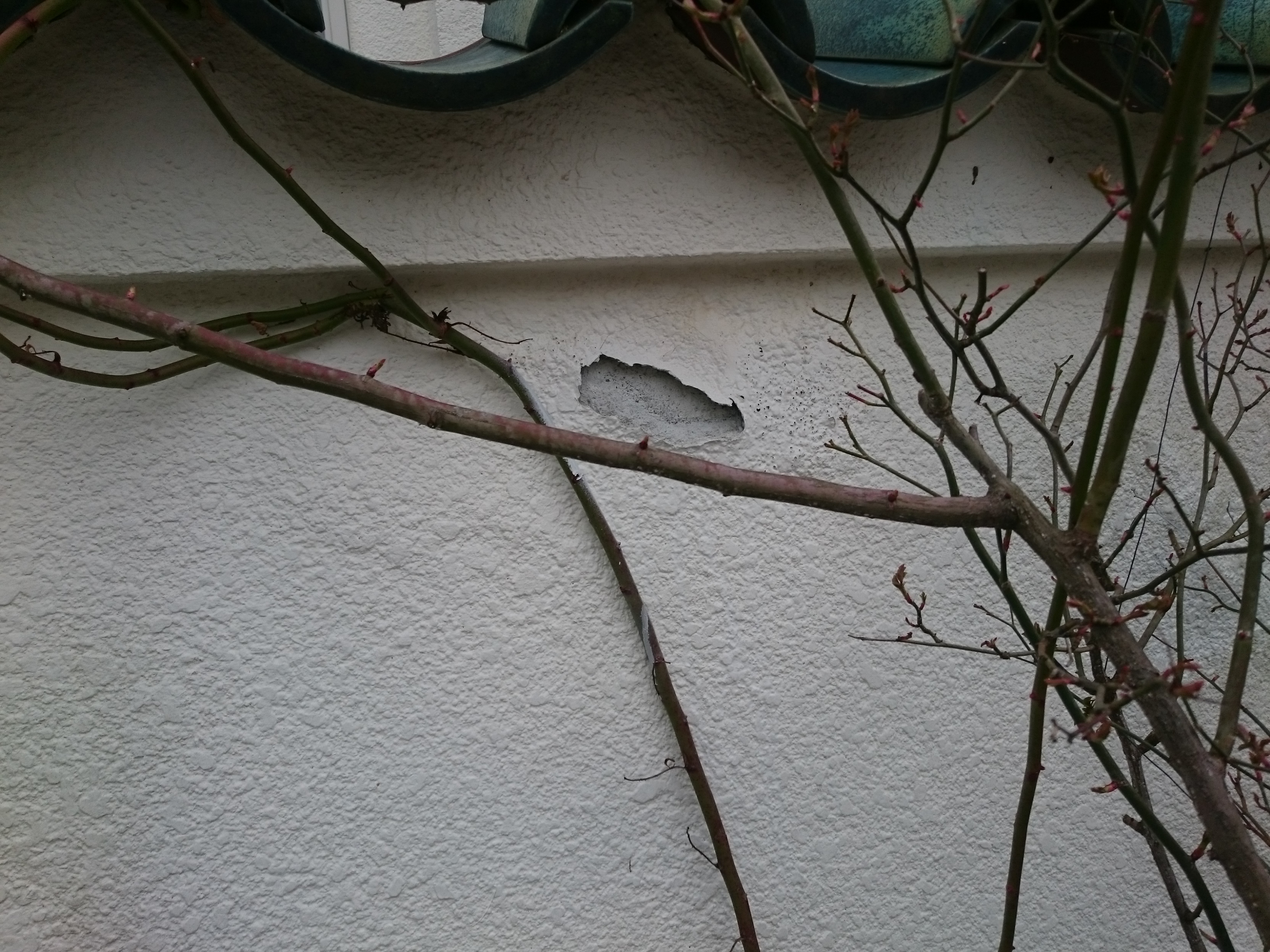 モルタルで補修しました。穴がうまって壁になじんでいます。