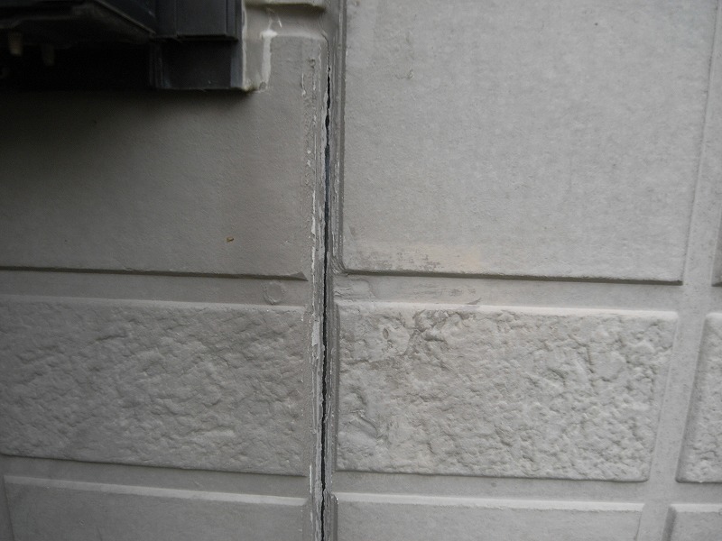 窓廻りの目地シール。柔軟性が無くなり、亀裂があります。雨水の浸入により、サイディングの膨張、反り、塗膜の剥離につながります。