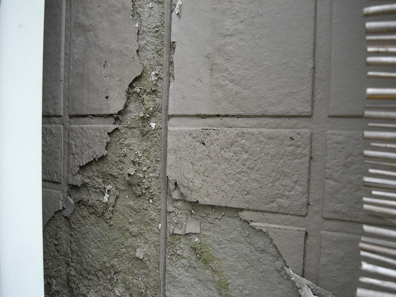 こちらはモールディングの積雪から水分を吸収したか、塗膜が劣化した部分から吸水した水分が冬場に凍る事で剥離する凍害が疑われました。