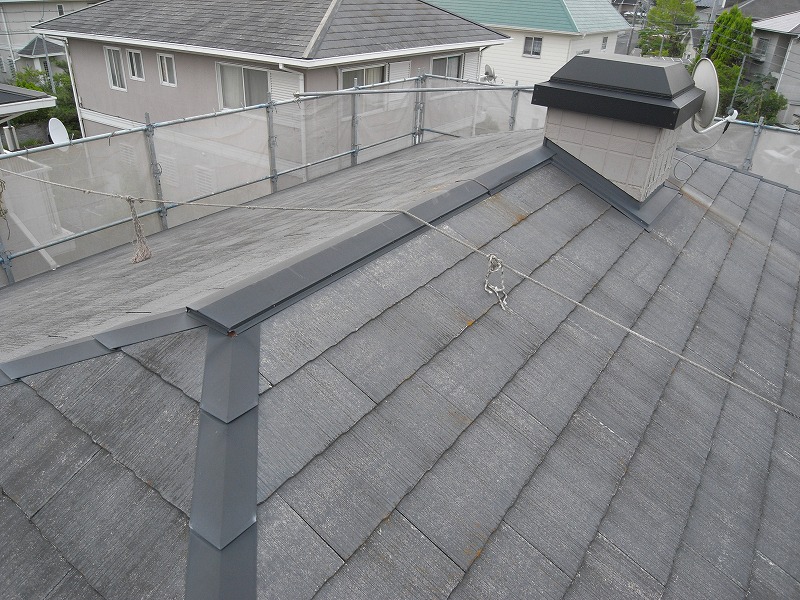外壁は水性シリコンセラUV、屋根はオリエンタル塗料の遮熱塗料「涼風」を使用しました。 シール材はノンブリードタイプの変成シリコンを使用。
