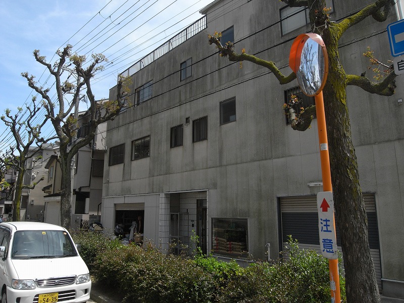 正面外壁 北側に面するためコケ汚れが多く見られます。