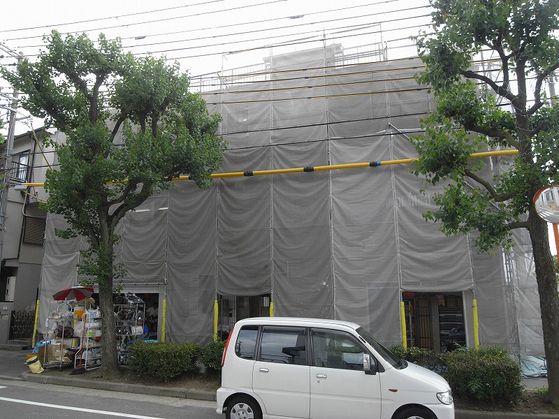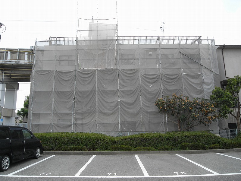 高圧洗浄すると水が浸入する恐れがあったため、パネルの反りをステンレスビス増し打ちで補修後、シーリング工事を先に行いました。